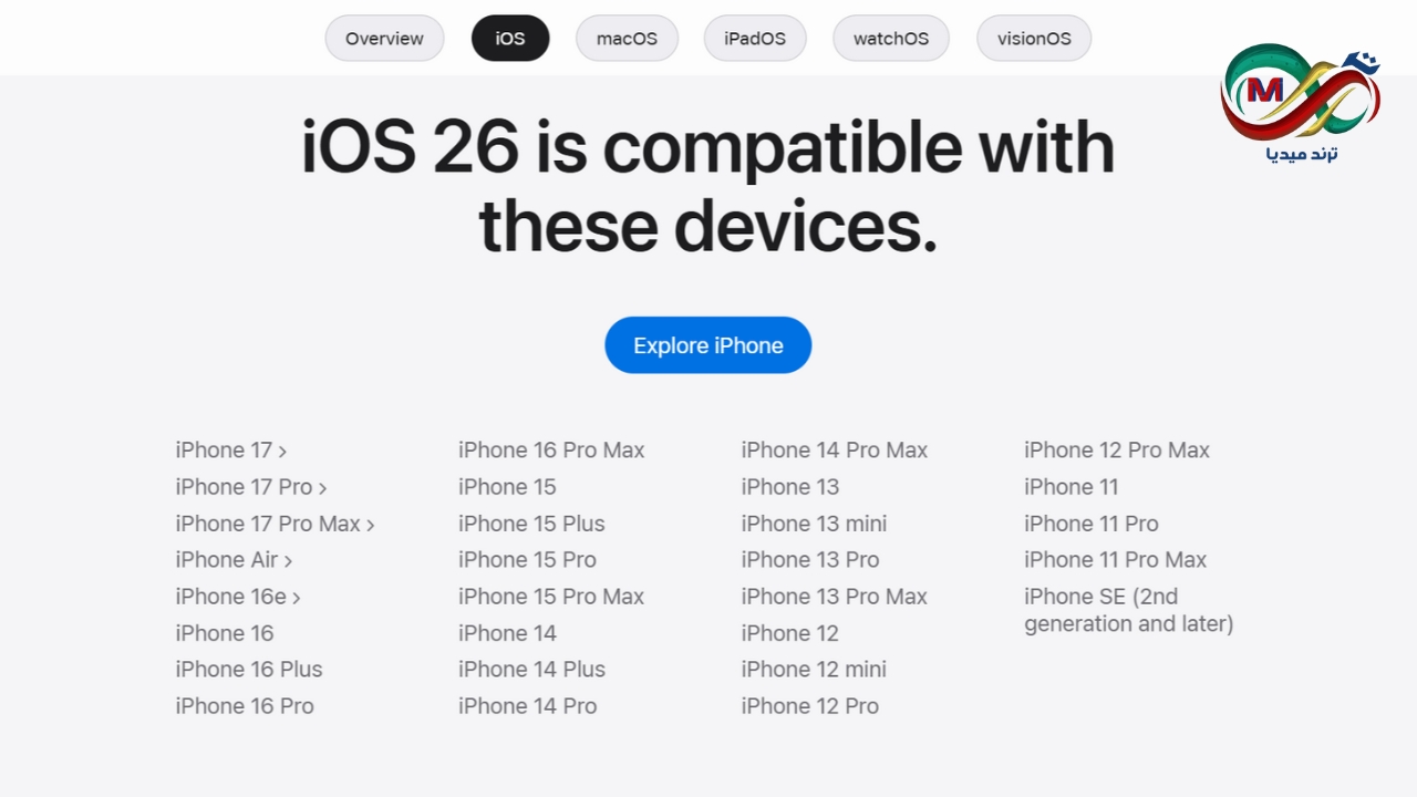 - تأكد من أن هاتفك متوافق مع iOS 26