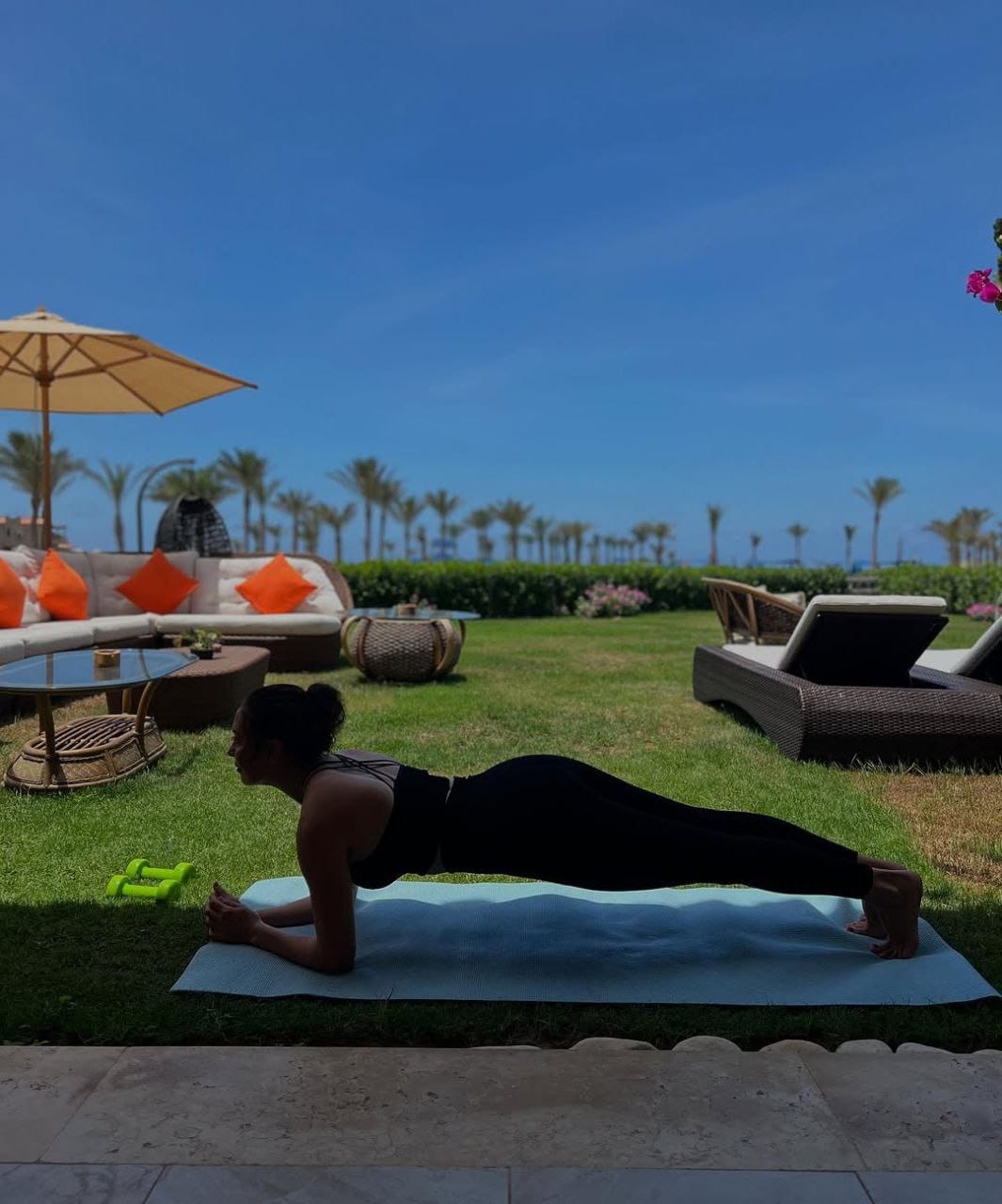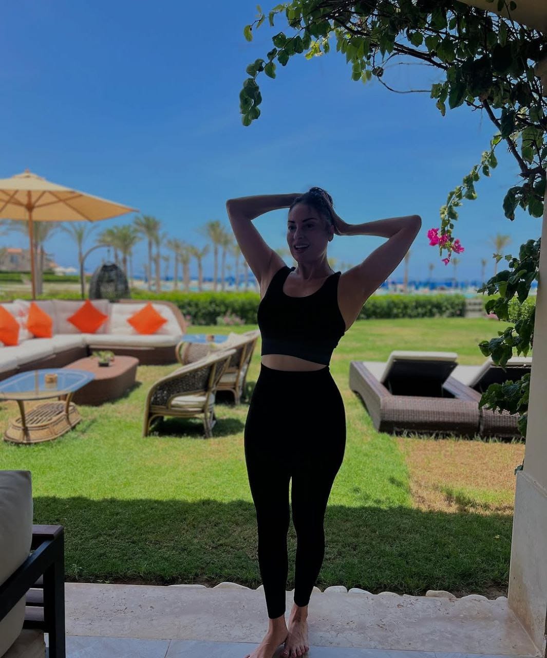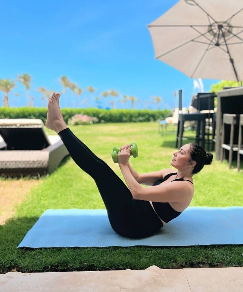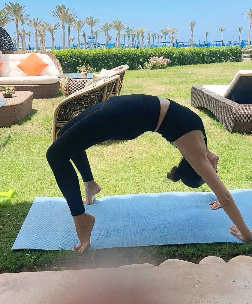 كما نشرت صورًا أثناء ممارستها للتمارين الرياضية، مرتدية ملابس رياضية أنيقة مكوّنة من توب قصير مكشوف البطن وبنطلون رياضي، ما أثار إعجاب المتابعين وحصد تفاعلًا واسعًا من جمهورها.